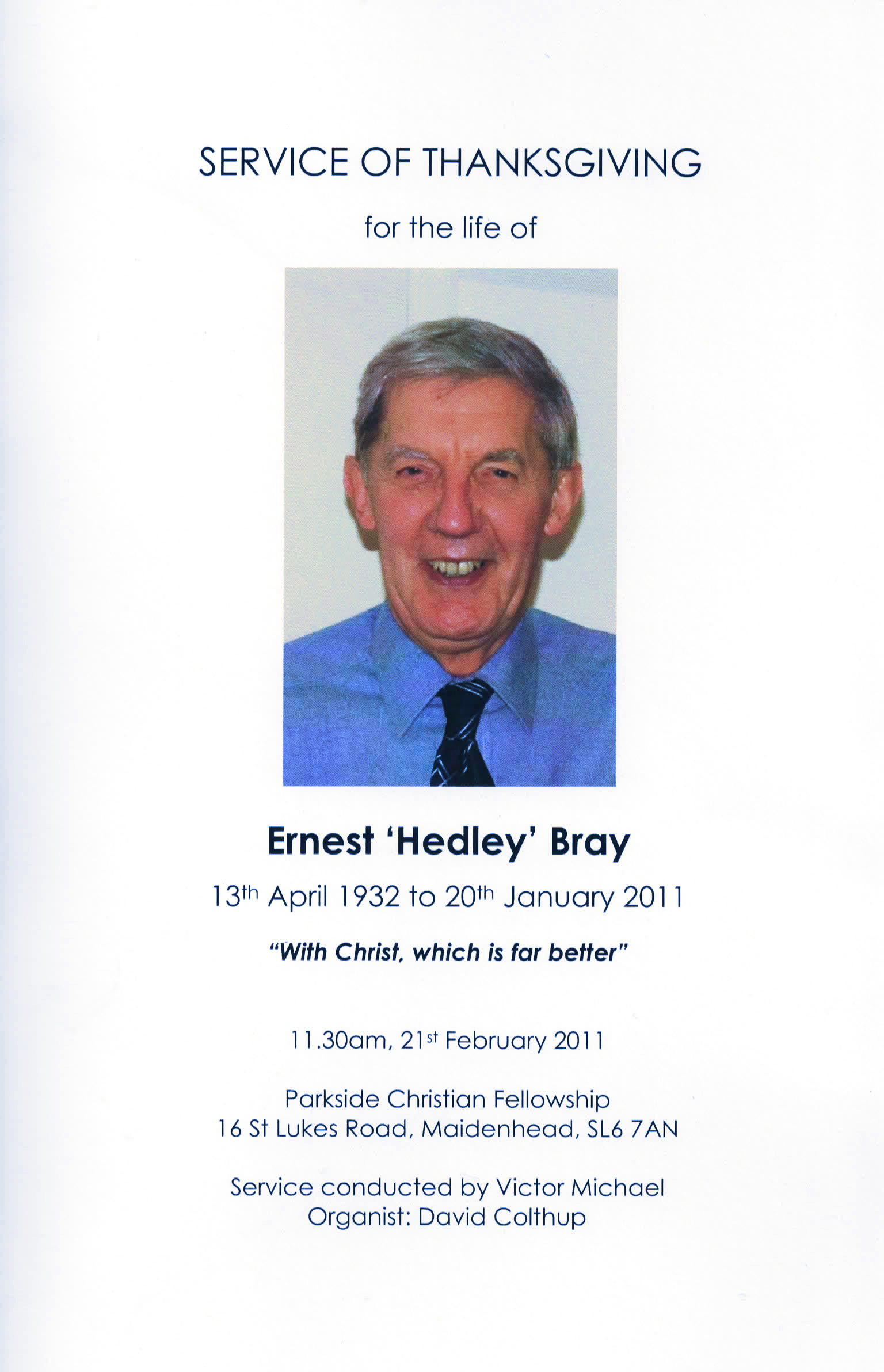 Thanksgiving Service for Mr Hedley Bray – 21/02/2011