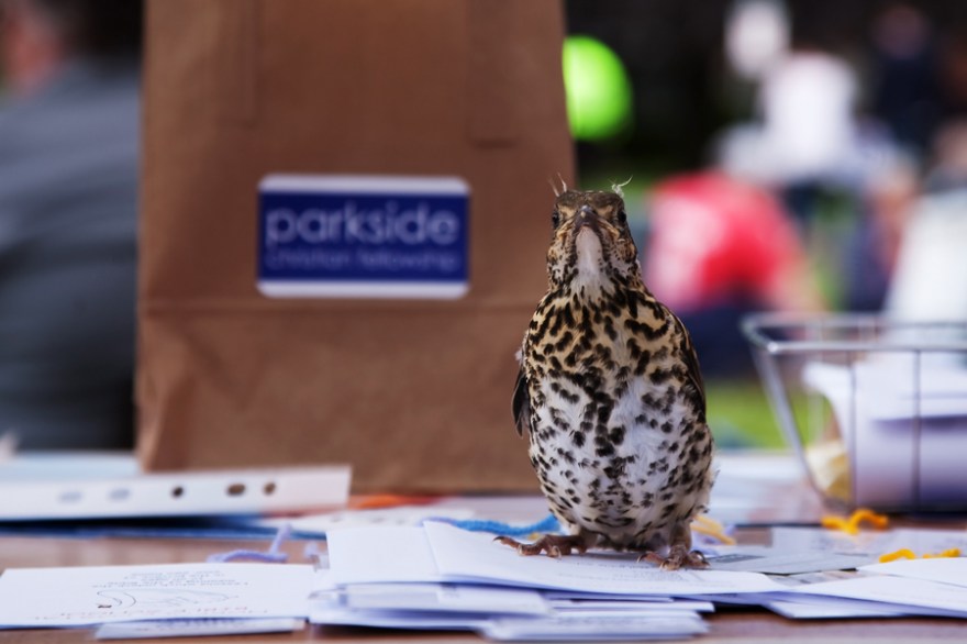 We also had an unexpected visit from a young song thrush who seemed unable to fly properly and hopped around inside the marquee for a while.