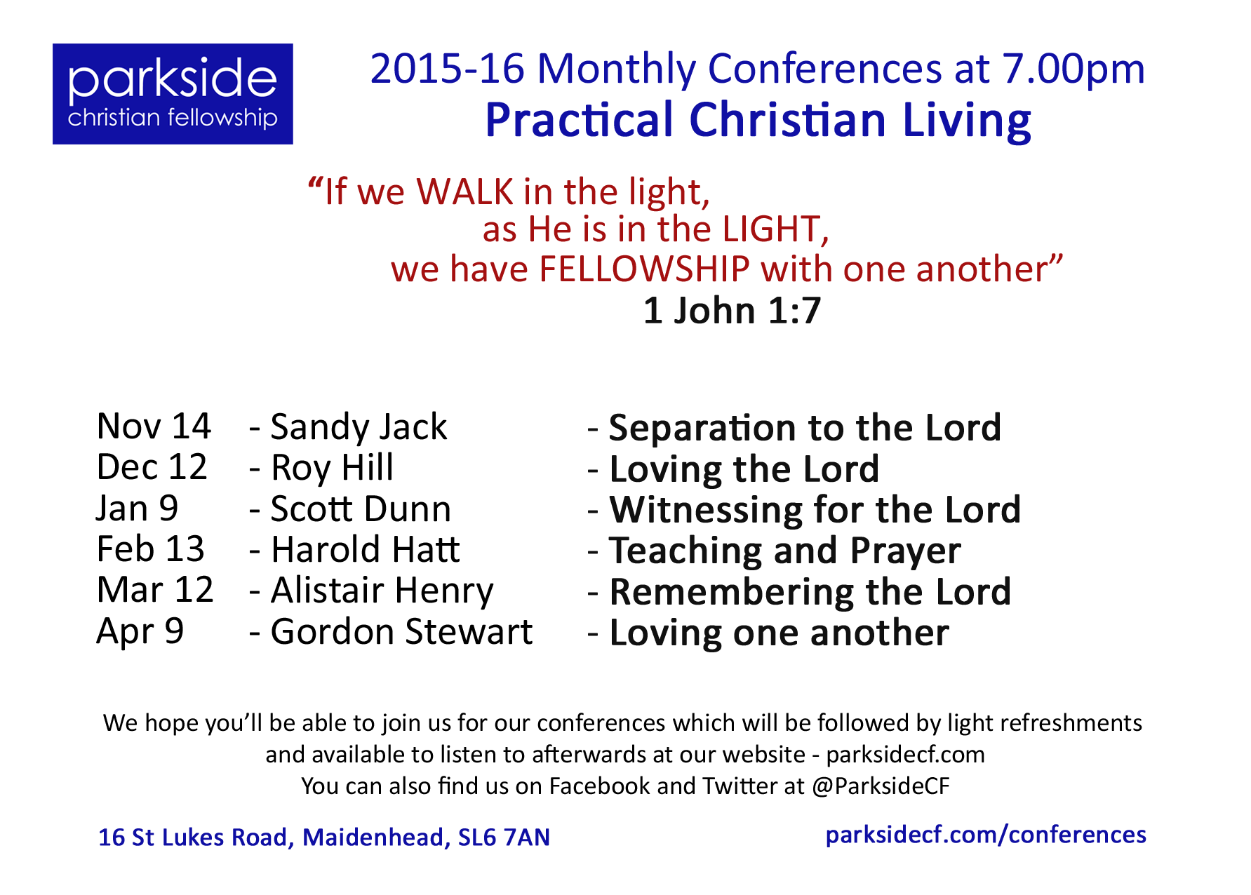 This year in our series of conferences, we’re looking at a series on Practical Christian Living.