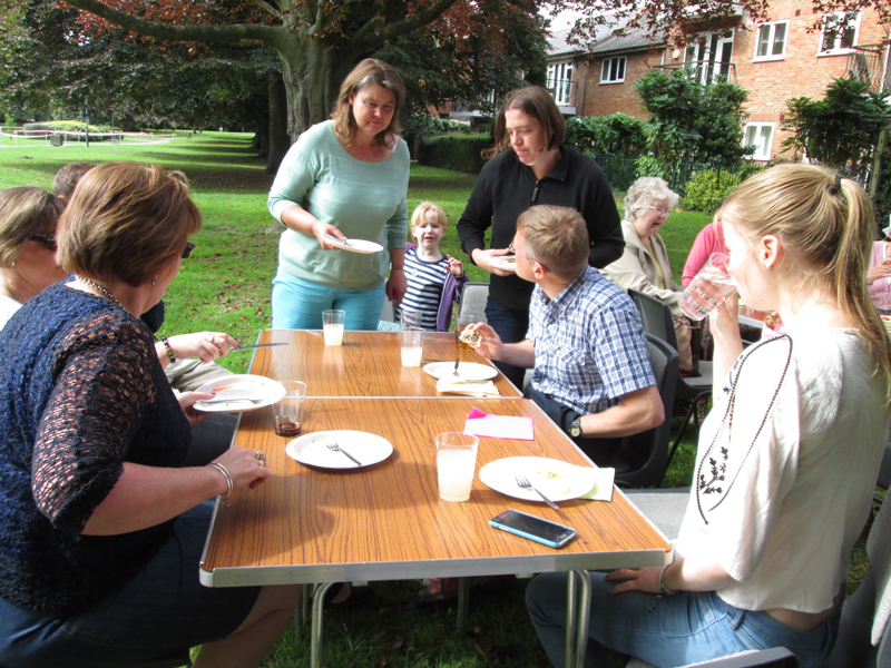 We were also able to put tables and chairs out in the park and people enjoyed sitting and chatting over a lunch of meat and salad, followed by a wide array of desserts. The children also enjoyed a game of kubb.