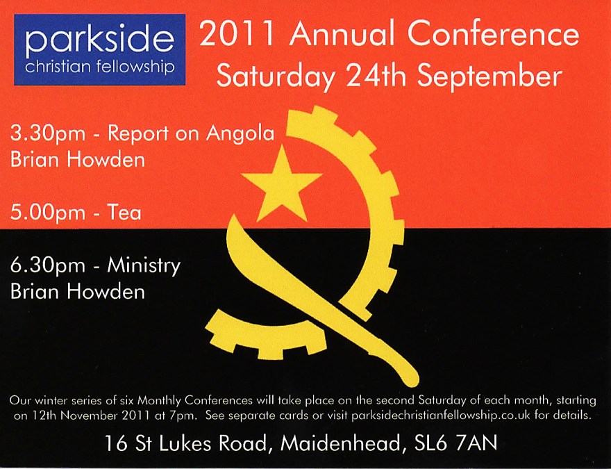 We’re expecting a visit from Brian Howden who will give a report on the work in Angola during the afternoon.