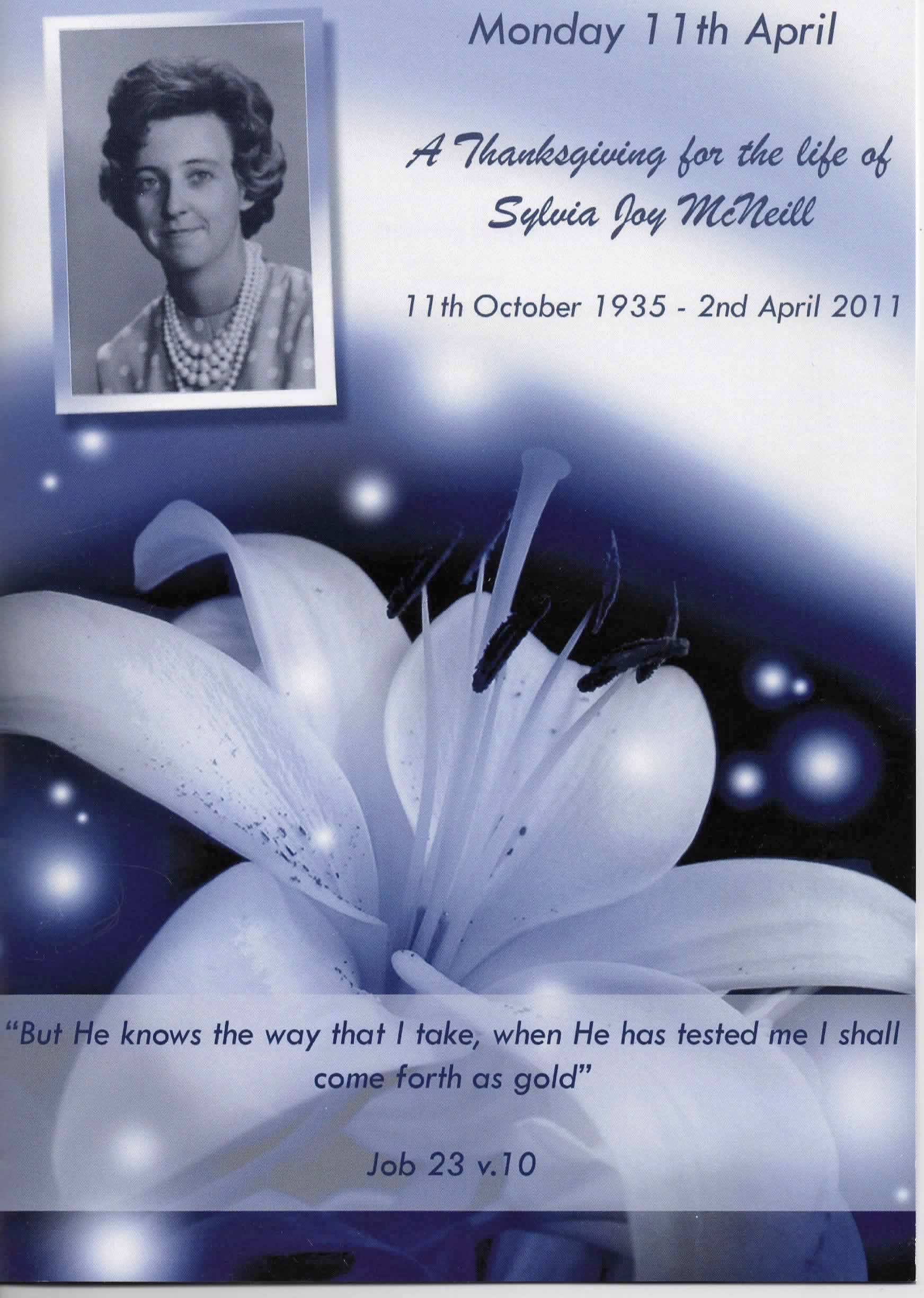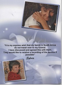You can listen to the service by clicking below. Please note that the service begins some 50 seconds into the recording, once Beryl and the family had entered the hall.