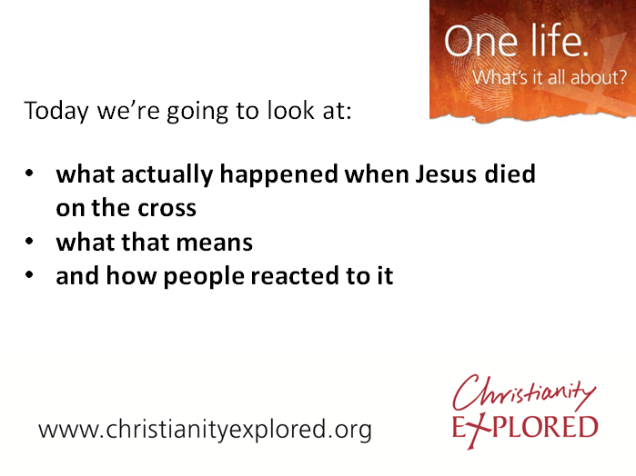 For those who were left, Alan read the reading from Mark 15:22-39 before David came up to speak on the fourth of our six weeks of Christianity Explored. His subject this week was The Cross: Why did Jesus die?