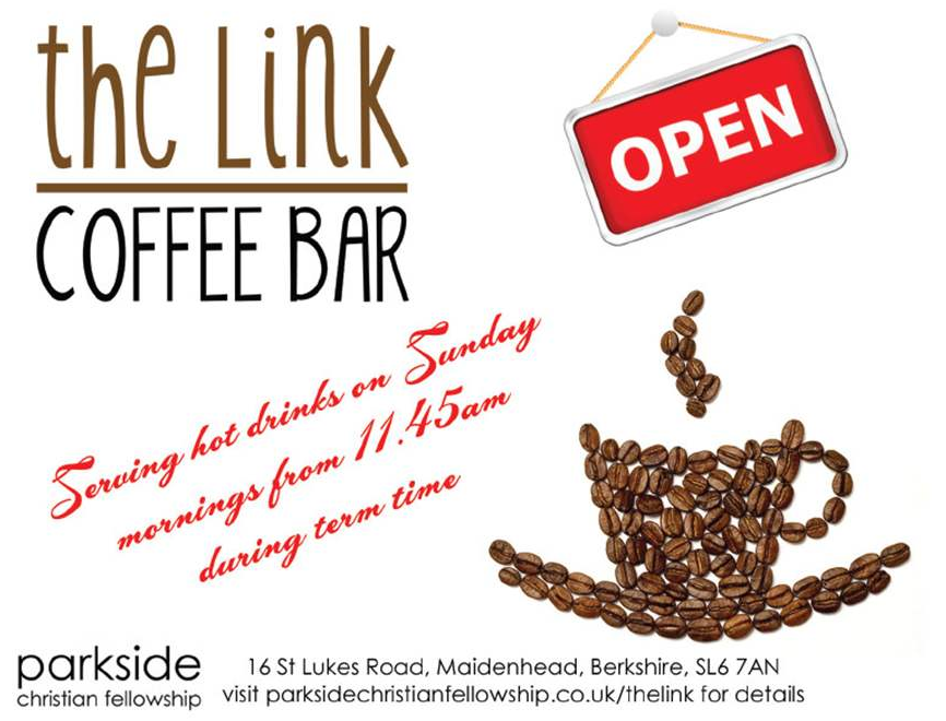 During term time, parents and carers are able to drop their children off for Sunday Club (at 11.45am) and then stay on to enjoy chatting over a free coffee, tea or hot chocolate and biscuits at The Link before collecting their children at 12.30pm, when Sunday Club finishes.